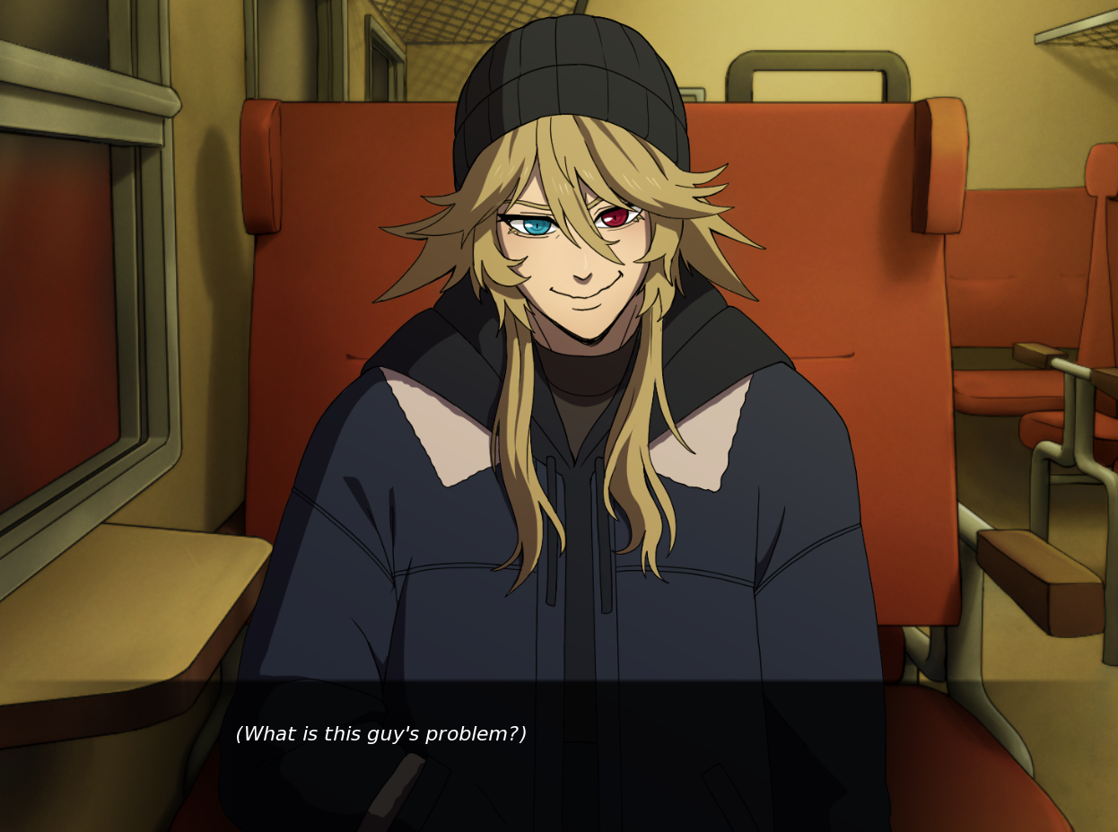 Trigger warnings for blood, selfharm, suicide, light gore, eye injury, general violence, murder and cussing (all of these are described only, as of writing this the game doesn't contain any CGs depicting violence)